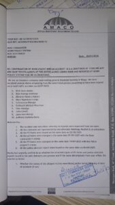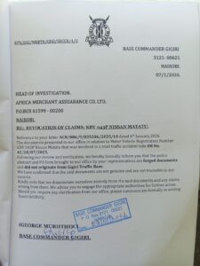 AMACO wrote to the Base Commander of Gigiri Police Station on January 6, 2026, seeking verification of the police abstracts and P3 forms submitted in support of the claims.