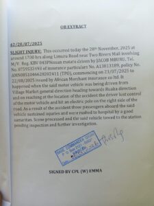 “Following our review and verification, we hereby formally inform you that the police abstract and P3 form brought to our office by your representative are forged documents and did not originate from Gigiri Traffic Base,” the letter stated.