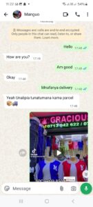 The buyer contacted a WhatsApp number shared on a TikTok page advertising clothing deals.